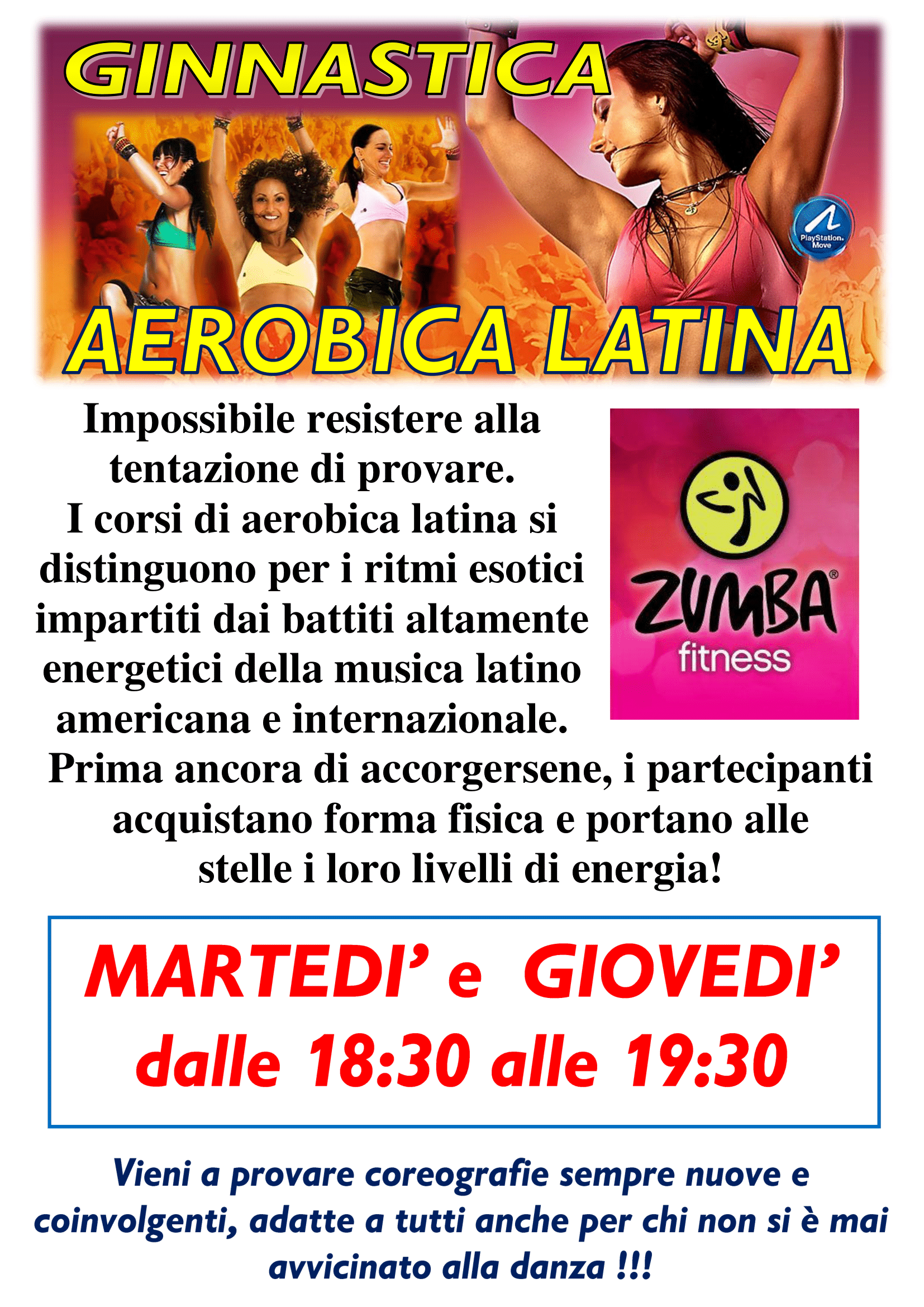 Una lezione dinamica e divertente a ritmo di musica latina. Allenamento aerobico eseguito con semplici passi di ballo, che coinvolge tutti i muscoli del corpo per una totale tonificazione. Adatto a tutti.