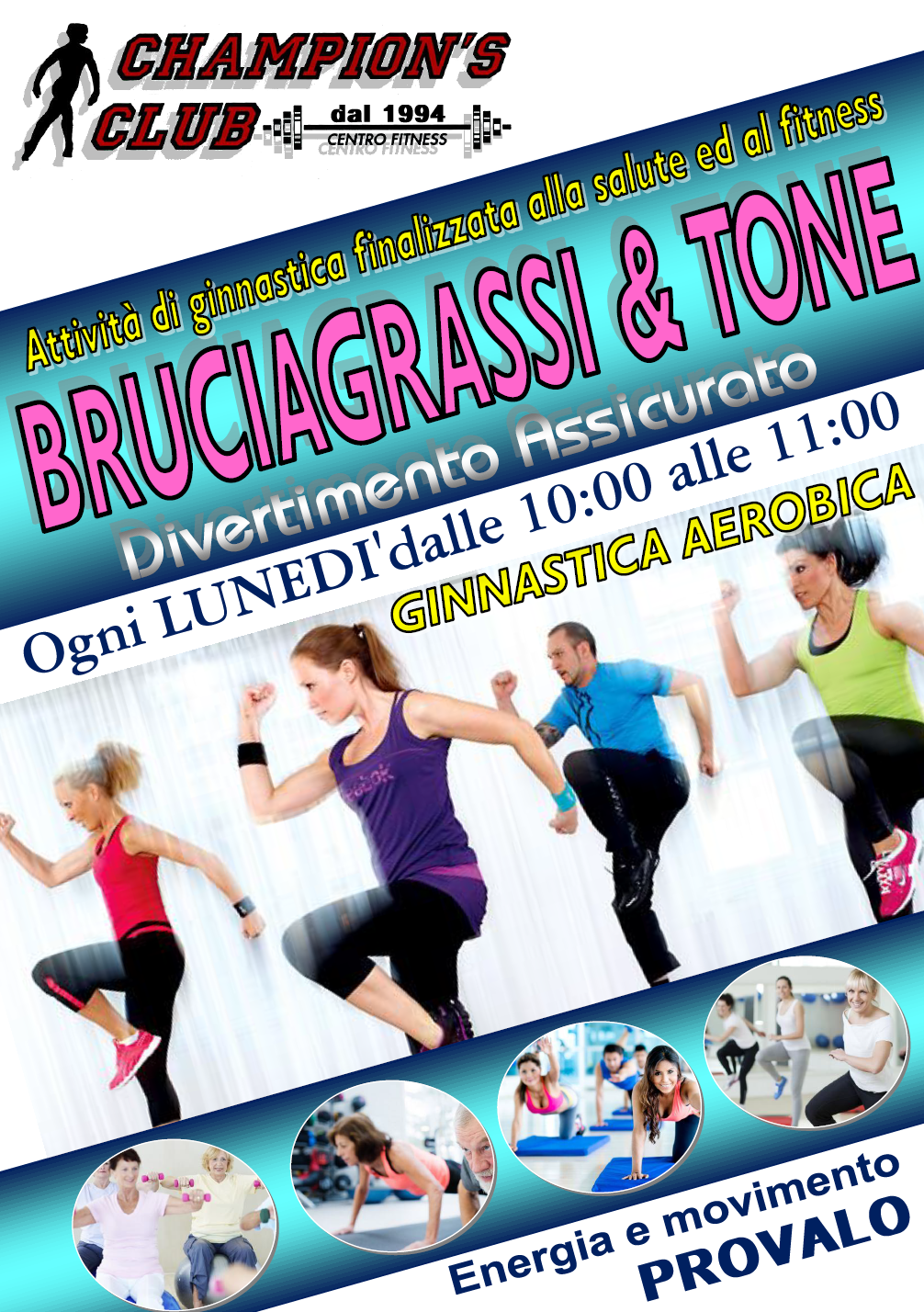 Programma di condizionamento muscolare su base musicale, volto a incrementare il metabolismo basale e a innescare processi fisiologici di eliminazione delle riserve di grasso. Garantisce risultati sicuri e tangibili di tonificazione e dimagrimento anche localizzato.