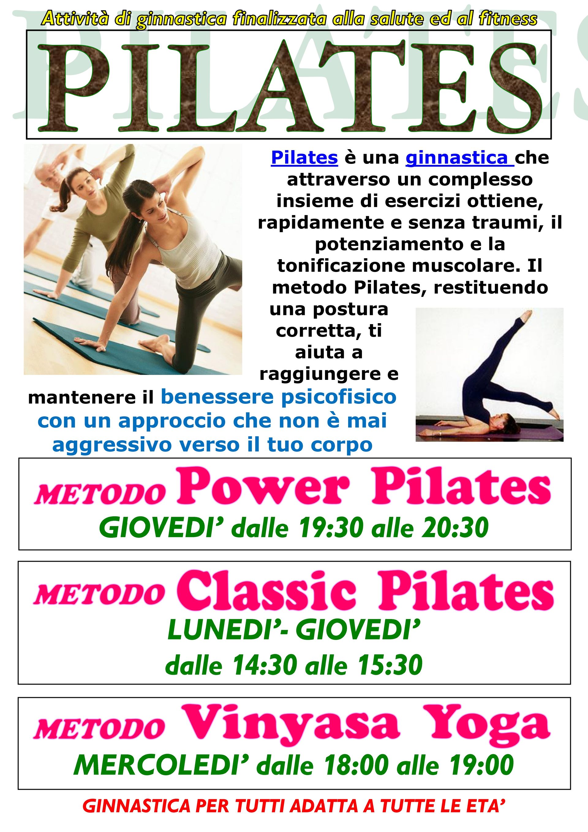 METODO PILATES e METODO YOGA ( Ginnastica per tutti )