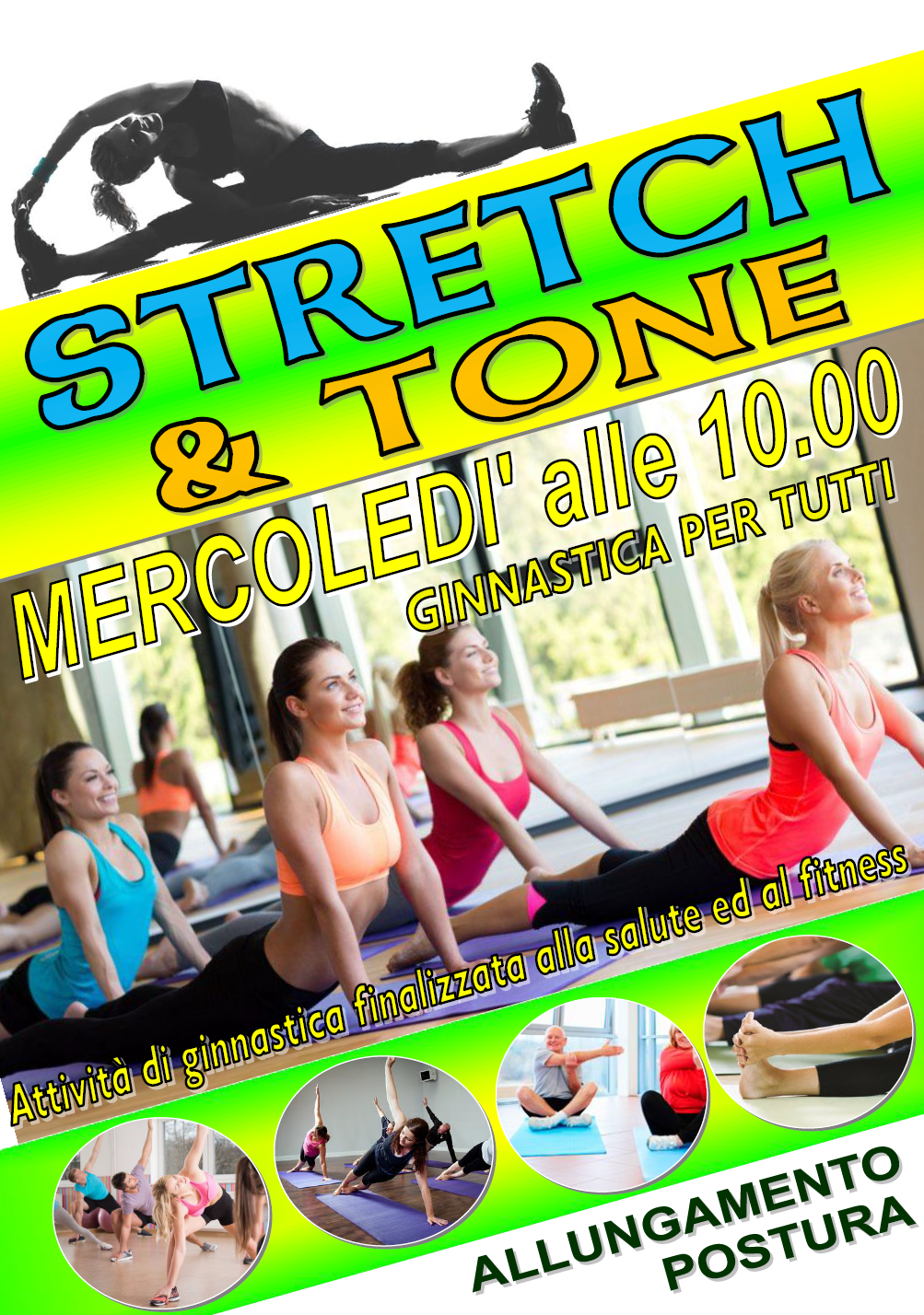 Programma consigliato a tutti, finalizzato al conseguimento di un benessere psicofisico completo attraverso esercizi di allungamento muscolare e tonificazione mirata.